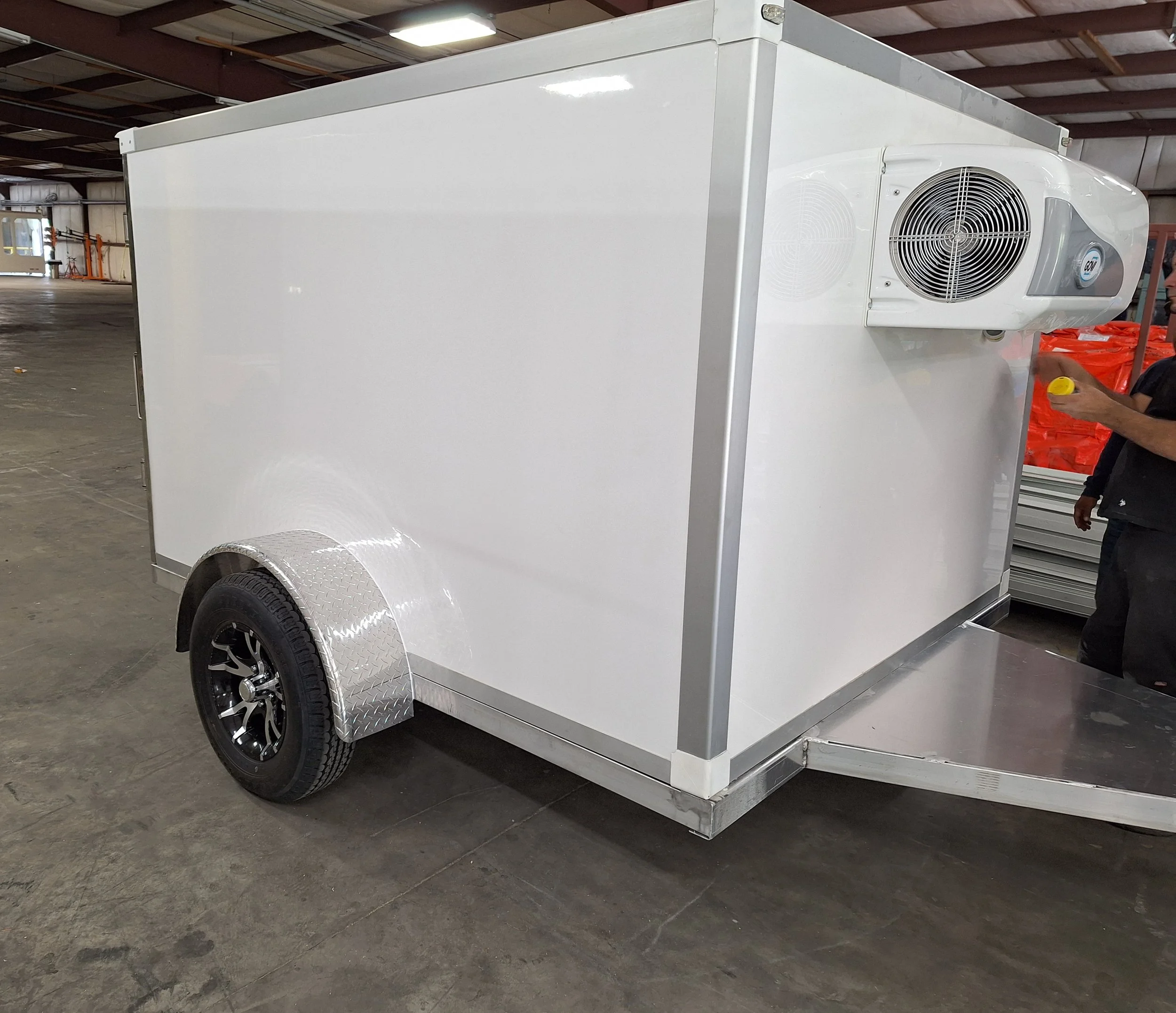 Freezer and refrigerator trailers can be the make-or-break difference in your business. As food and material prices increase, your margin for error decreases drastically. We design each of our trailers to suite your specific needs. For example, we look at what you are cooling, the ambient temperature outside the trailer, your electrical needs, how often it will be opened, and many more factors. By determining your exact needs, we can build a trailer to hold almost any temperature.